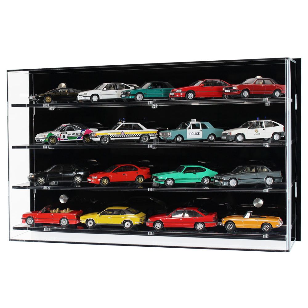 We have a small range of display cases suitable for displaying your 1:43 scale model cars, currently the stock display cases are all wall display cases, but if you want to display your collection on a desktop then we can also supply a custom made tabletop display case for them. Please visit our custom display cases page for more information on that option.